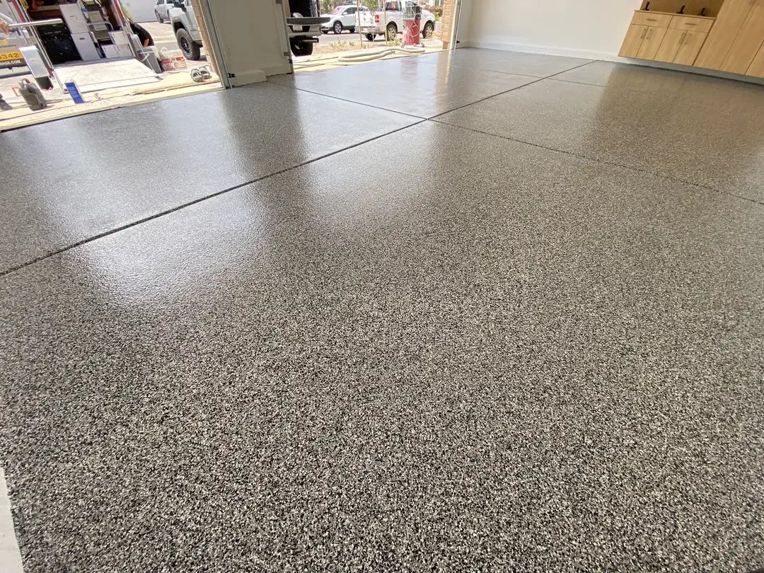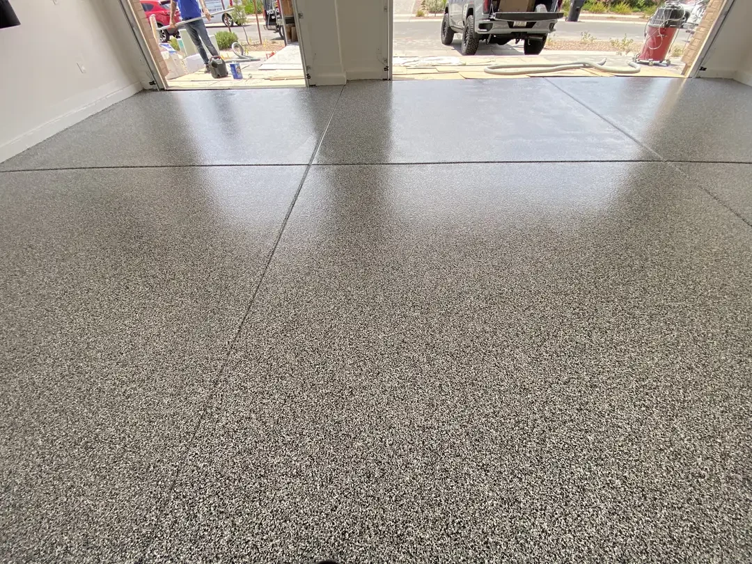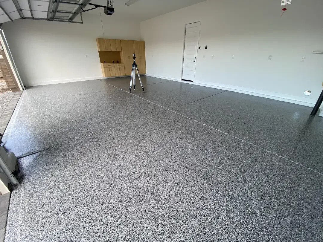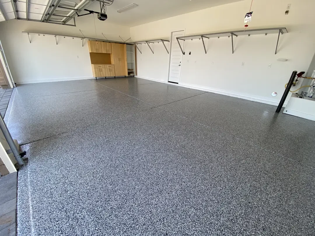 Before moving in, Derek wanted to protect his garage floor with a durable coating that would stay sharp for years. He chose our classic Desert Luna color mix—a blend of white, grey, and black that’s both elegant and rugged.