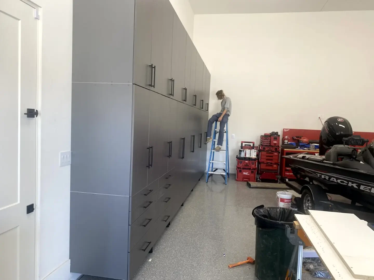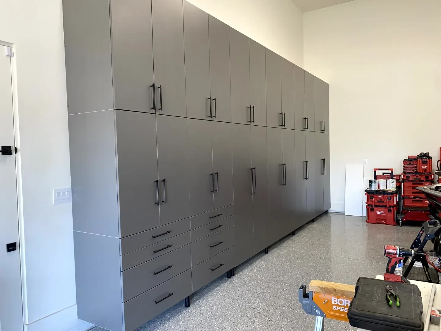 Mike’s RV garage was a beast—oversized, voluminous, and ready for serious storage. He asked for cabinets that were just over 10 feet tall and nearly 24 feet long, and we delivered.