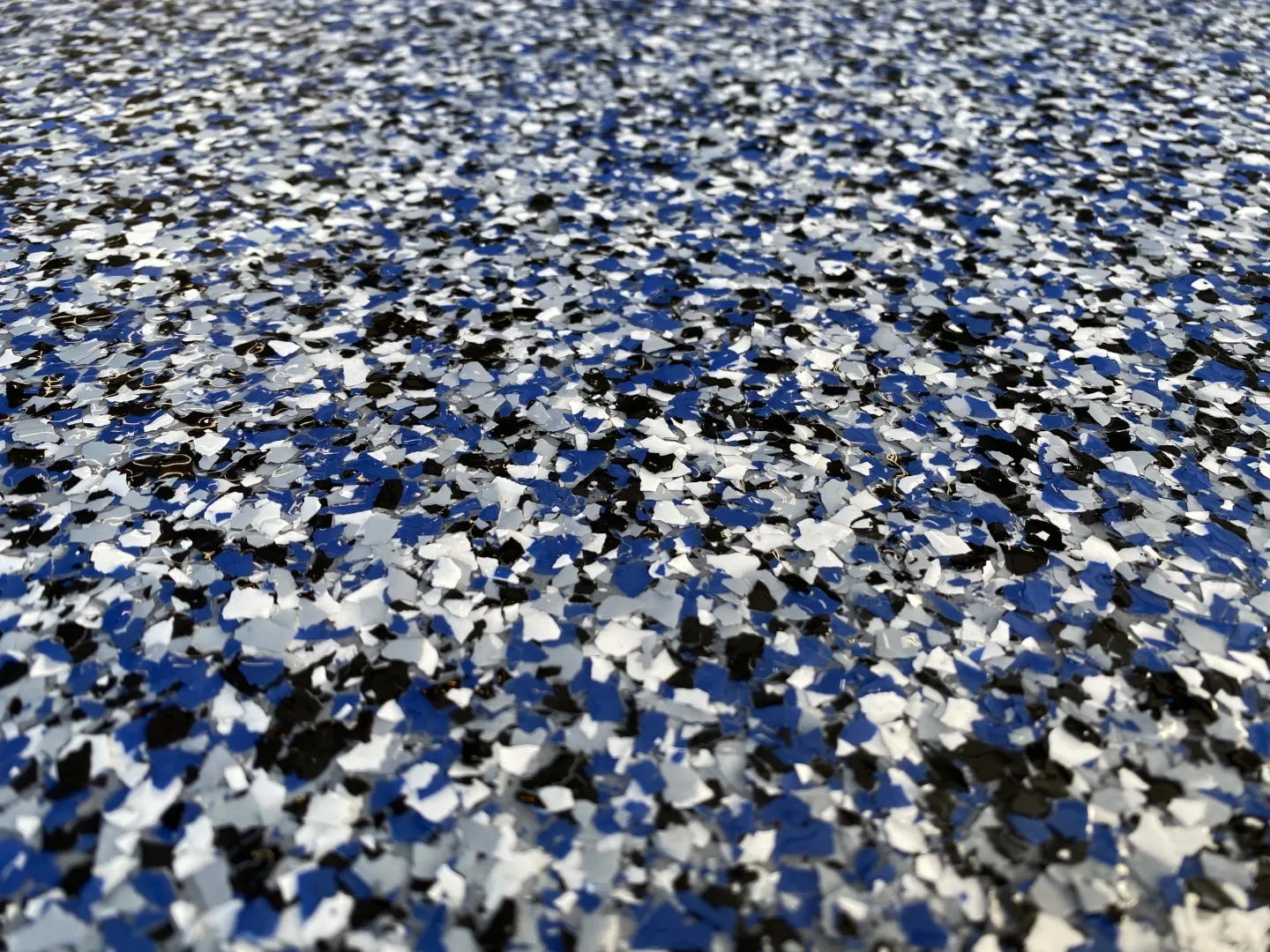 Paul was going to go with a black/white/gray color mix for the chips but was vetoed at the last minute by his wife, who wanted to add some blue into the mix to make it pop a bit. Once the floor was finished, Paul was happy about the last-minute change and really liked the final color, which is named “Orbit”.